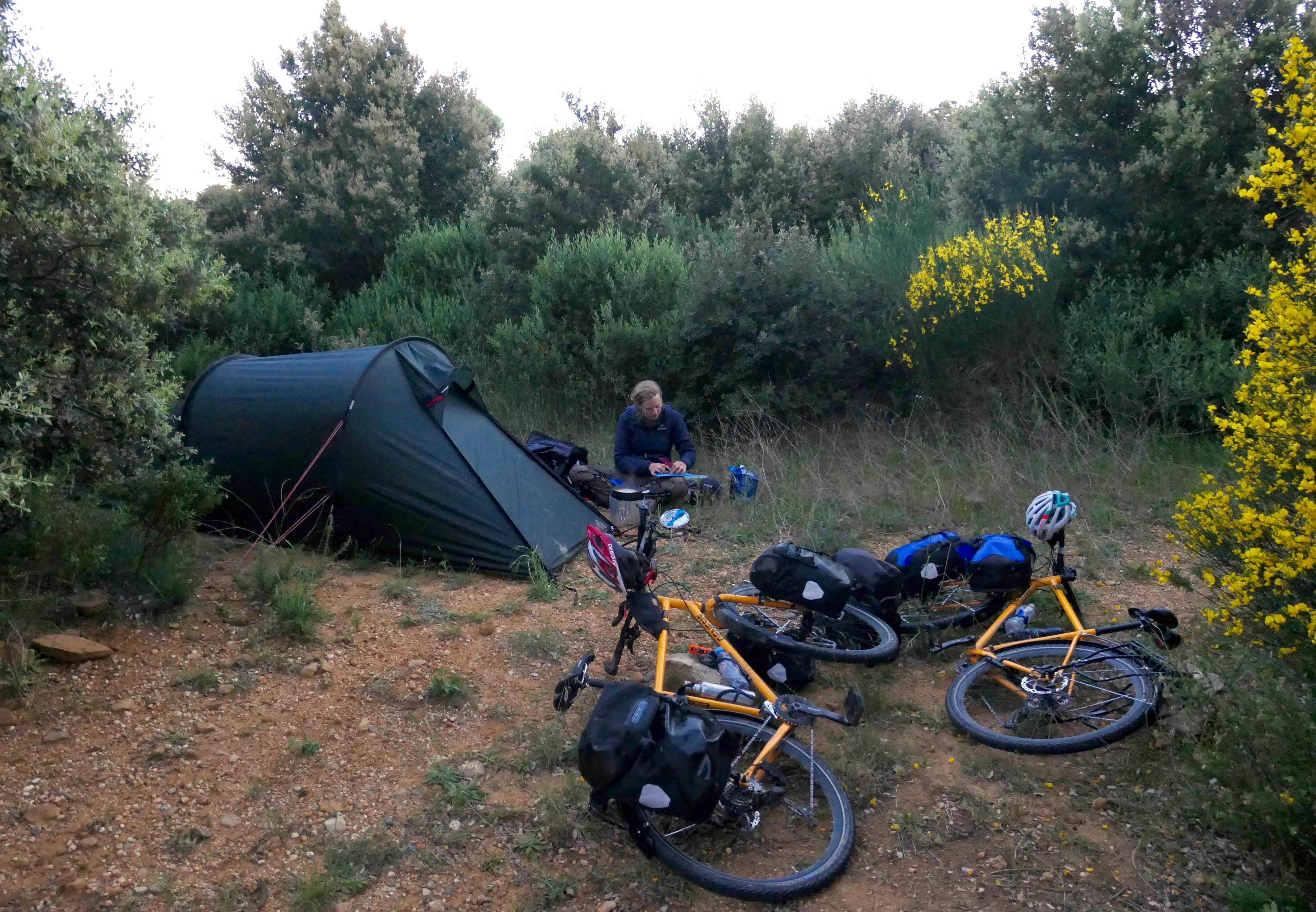 Just as we were yearning for the quintessential French countryside we embarked on one of the cycling highlights of our trip so far, as we rode a breathtaking 18km coastal stretch from Sant Feliu de Guixols to Tossa de Mar. The contour lines on our GPS were intimidating but the thumbs up, looks of amazement and shouts of encouragement from the passing lycra brigade on their pencil-thin road bikes and support vehicles were morale-boosting and appreciated by two novice cycle tourers on matching yellow bikes, their panniers full to the brim.