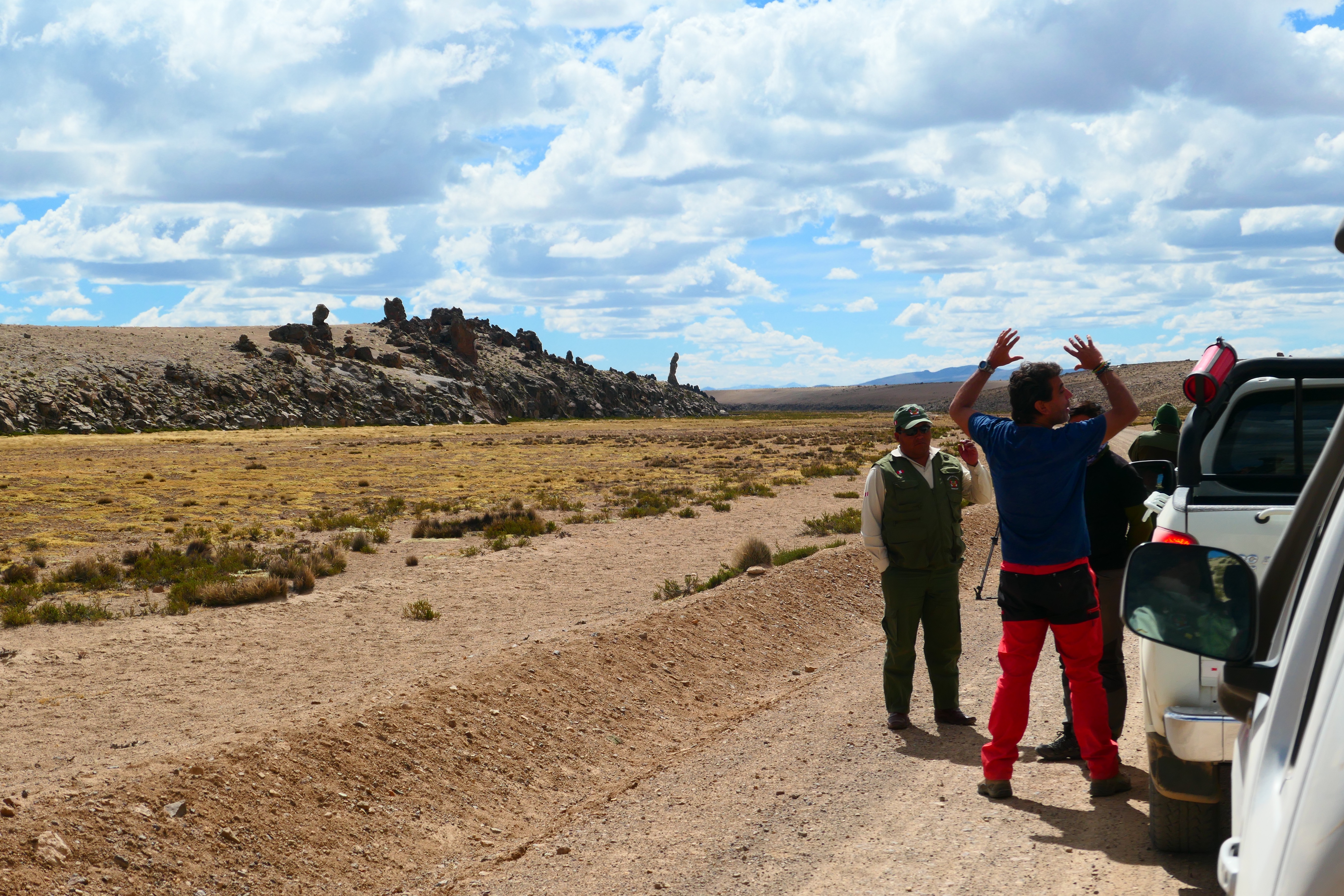 The following day was fascinating if very stop/start as we followed Manolo and his team around in the back of a pickup, filming and photographing llamas, alpacas and vicunas from every possible angle, as well as us two Brits exploring the bizarre rock formations at Bosque de Rocas de Mauca Arequipa. We’ll have to wait for the final edit to see if we made the cut!