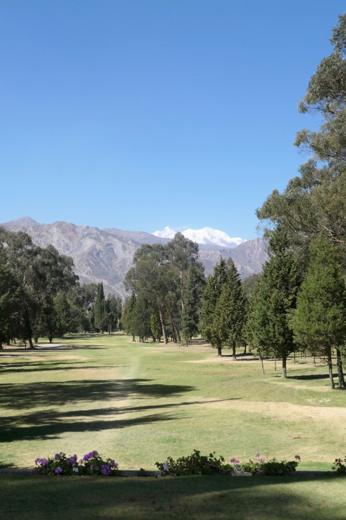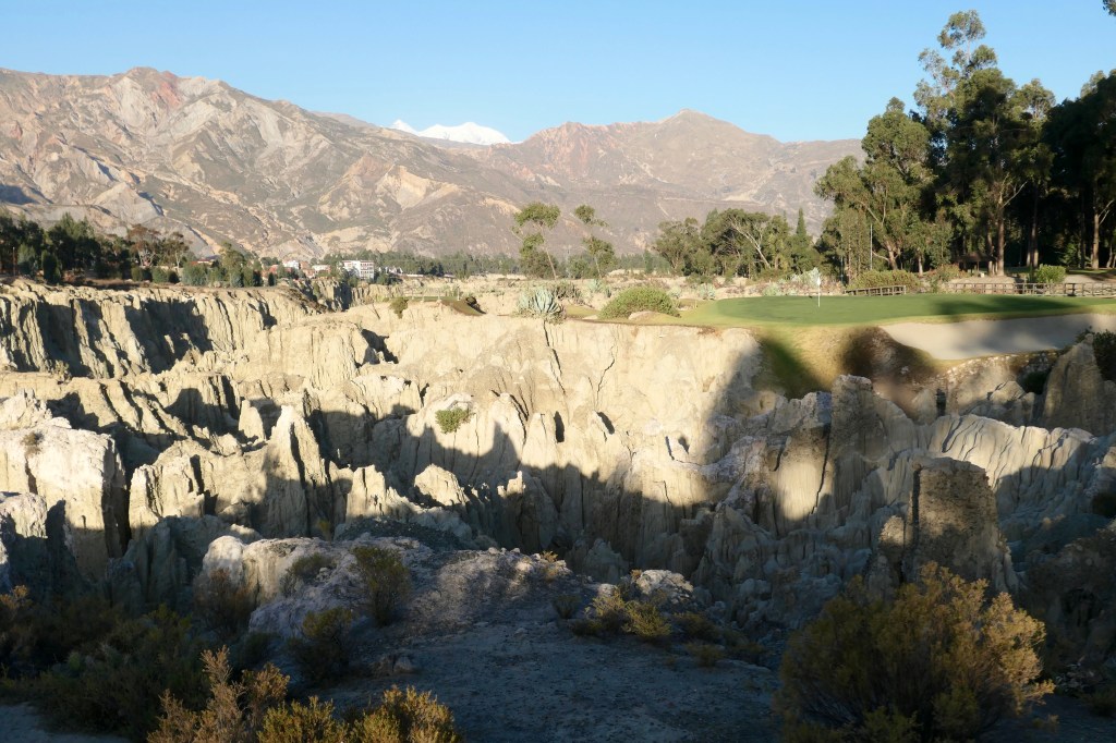 The 7,013 yards Par 71 course has many classic British design features with narrow undulating fairways and small greens. Whilst not a woodland course there are plenty of tall and shady eucalyptus and pine trees to catch out any stray shots – I seemed to spend a lot of my round chipping out sideways! Snowcapped Mount Illimani (6,438m) watches over the course to make sure all golfers behave themselves and the signature hole is no doubt the 12th, a tricky 185 yard par 3, known as the “Moon Hole,” due to the labyrinth of canyons, stalagmites and crevices which you have to hit over.