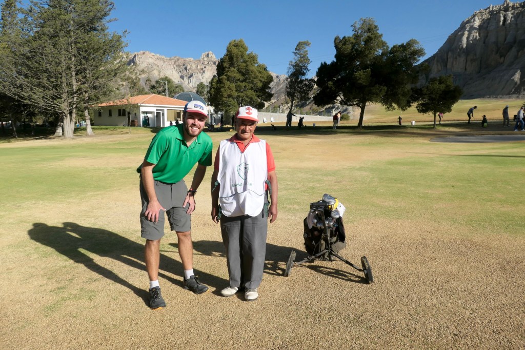 My caddie for the day was 60-year-old Manuel, although 28 years carrying clubs up and down the fairways had somewhat aged him. He wore a pair of retro black and white Adidas shoes, grey suit trousers, a red polo shirt and cap, as well as a white bib with the lettering ‘Mercantil Santa Cruz’ on the back. One of the joys of playing golf is chatting away to your playing partners, or in my case, your caddie. “Are there many golf courses in the UK?” enquired Manuel as we strolled down the middle of the 6th fairway. “Thousands” I replied. Manuel was astonished but that’s not surprising given there are only a handful of golf courses throughout Bolivia.