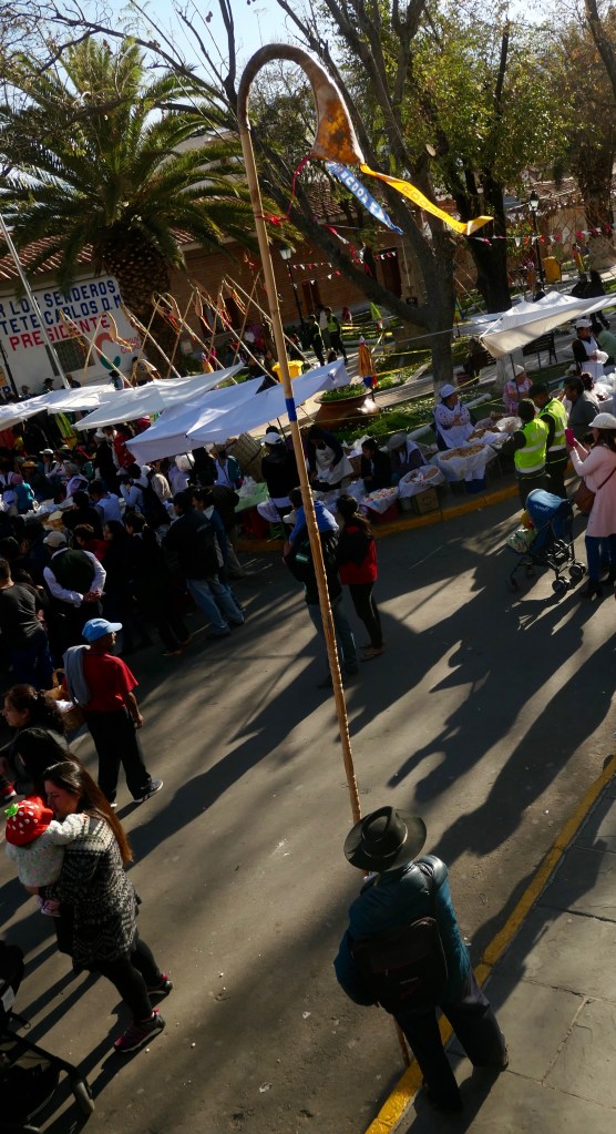 The parade culminated in a festival on the church square. There was delicious street food being sold everywhere, while on stage a competition was taking place to see who could best play the caña – an impossibly long instrument made of cane, with an animal skin trumpet at the end. It only seemed to emit two notes, but that didn’t stop many competitors of all ages putting their own artistic spin on it.