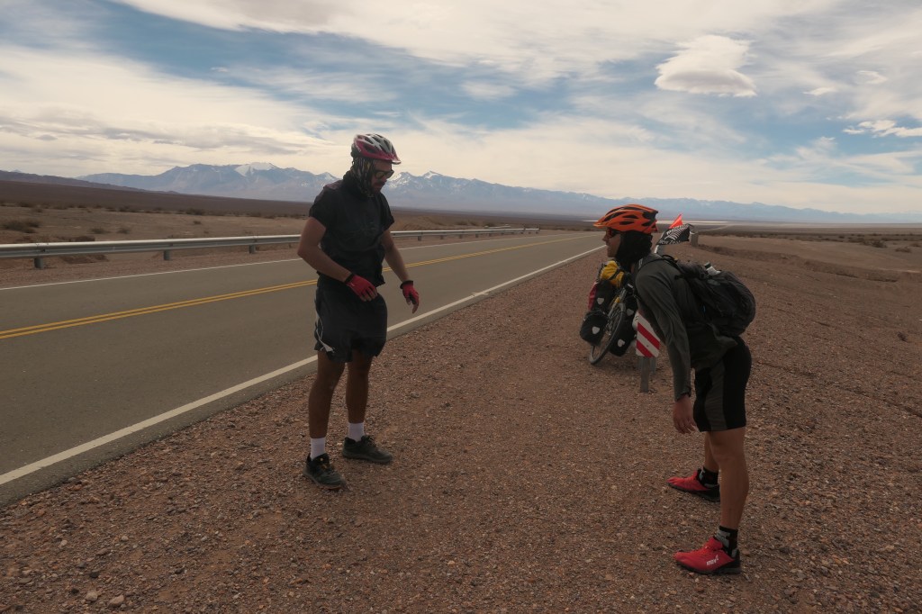 So we set out from San Jose de Jachal, me slow, Jay grumpy and Chillo firmly motivational. The wind is blowing hard in our faces, almost telling us that if we just turn around it will gently push us back into town, where we can return to our nice mini apartment and eat more Grido ice cream. But no, Chillo The Motivator is determined we’re going to have a good day and we push on through.