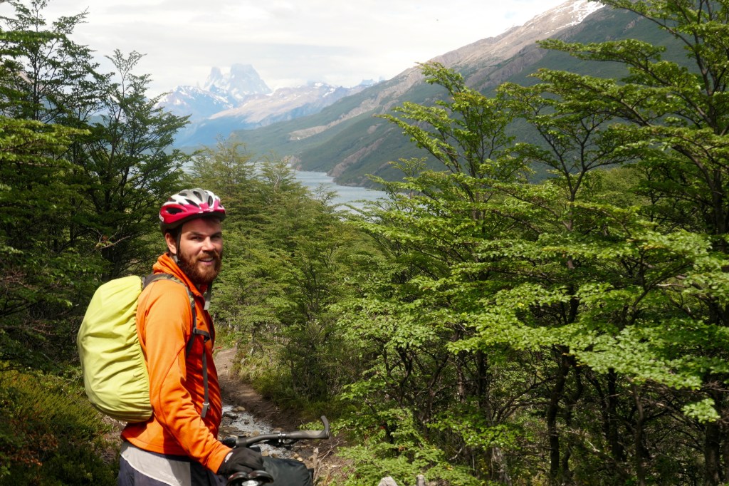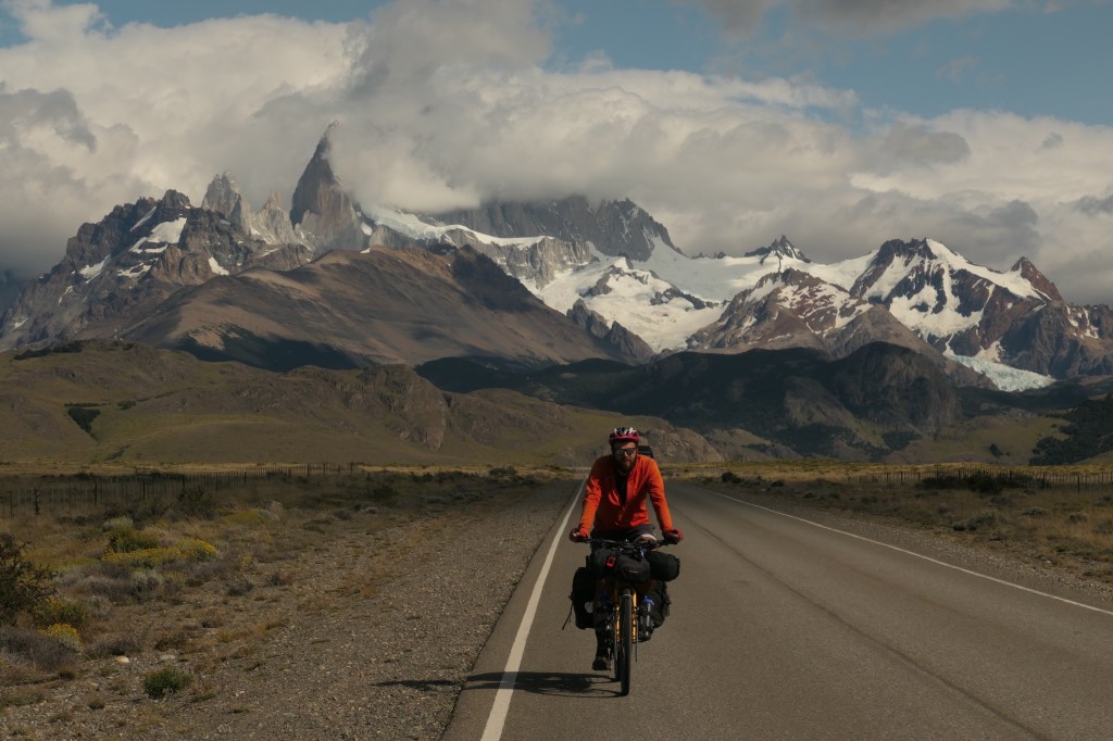 The ginormous and impenetrable Southern Patagonia Ice Field means the Carretera Austral ends 7km south of Villa O’Higgins. If you want to continue further south in Chile by land, you must cross back into Argentina. From Villa O’Higgins, vehicles retrace their tracks back north, but cyclists get to continue the adventure. After a choppy ferry ride across Lago O’Higgins we pushed our bikes along gaucho tracks, carried them through rivers, crossed another lake, cycled 39km and just like that were back on tarmac, wheeling down the main drag of El Chaltén, the hiking capital of Argentina.